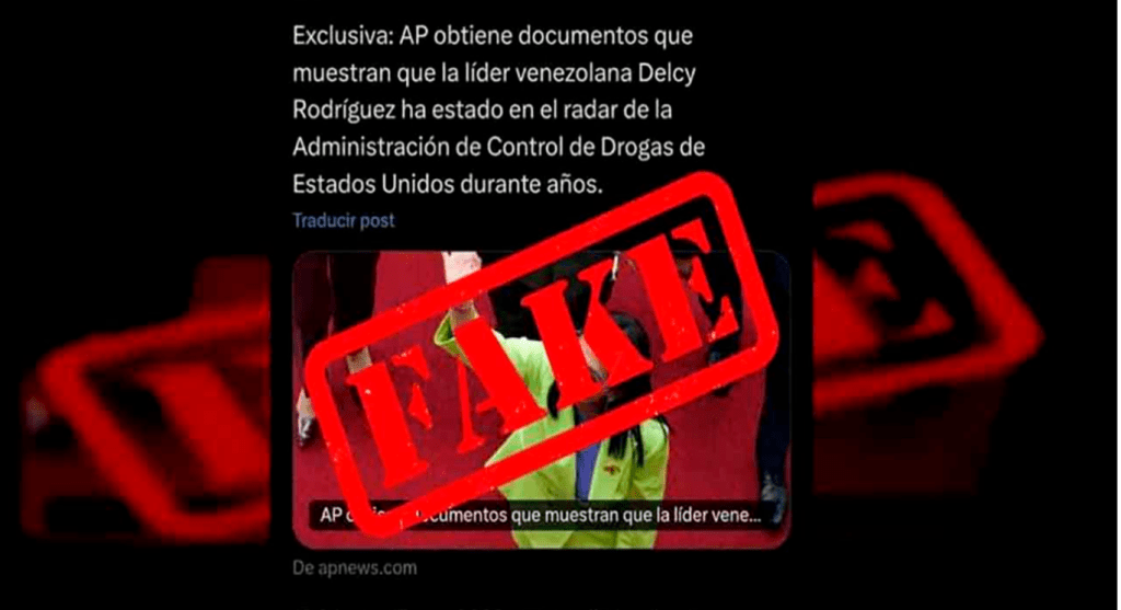 Caracas (Correo del Orinoco); A través de la red social X, el Gobierno Bolivariano desmintió la fake news replicada por la agencia de noticias internacional The Associated Press (AP), con la cual tratan de impulsar una nueva narrativa contra Venezuela, ahora utilizando la figura de la presidenta encargada, Delcy Rodríguez.