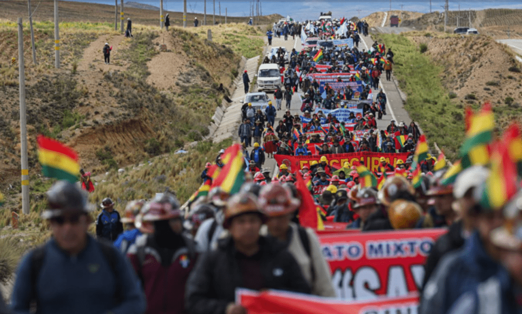 A comienzos de enero, miles de manifestantes iniciaron una marcha desde Calamarca hacia La Paz, recorriendo decenas de kilómetros durante tres días consecutivos. A lo largo del trayecto, la movilización fue creciendo con la incorporación de delegaciones campesinas, docentes urbanos y rurales, mineros y organizaciones sociales de distintas regiones del país. La protesta no solo expresó el rechazo a la suba de los combustibles, sino también una crítica más amplia al rumbo económico y a la forma de gobernar mediante decretos, sin debate social ni consenso popular. Al llegar a las inmediaciones de La Paz y El Alto, la marcha se transformó en una concentración multitudinaria que tensionó el escenario político nacional, evidenciando el nivel de descontento social frente a las políticas de ajuste.