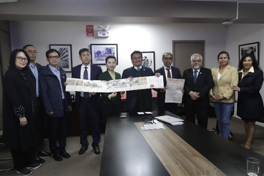 Lima (Andina): En el marco de la conmemoración del 44º aniversario de la Agencia Peruana de Noticias Andina, una delegación de la Asociación Nacional de Periodistas de China (All China Journalists Association-ACJA) visitó las instalaciones de Editora Perú.